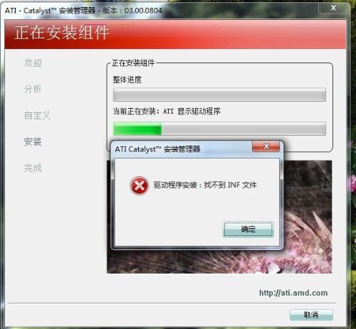 在Win7系统下安装AMD显卡驱动时可能会遇到“找不到INF文件”的弹窗