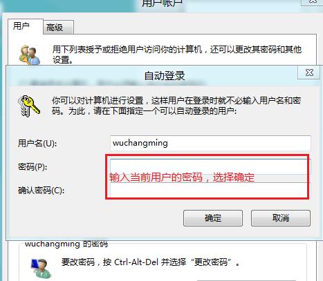 3、单击“确定”后按照提示输入该帐户的密码即可。这样,我们就无需在开机输入密码就能直接登录了。