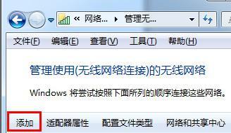 | 主要症状: 详细讲述手动添加无线网络的方法 | 具体方法: 1、点击屏幕右下角无线网络图标,选择打开“网络和共享中心”; 2、点击“管理无线网络”; 3、点击“添加”; 4、点击“手工创建网络配置文件”; 5、输入“网络名”,选择“安全类型”,输入安全密钥,勾选“即使网络未进行广播也连接”; 提醒:前提是你必须知道要连接的无线“网络名”(SSID) 6、提示“成功地添加了”,点击“关闭”; 7、此时已经成功添加无线网络。