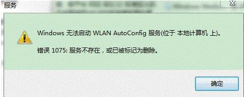 Win7系统下在“网络连接”中右键启用无线网络连接,但启用后都没反应,还是灰色的,带个小叉号,在服务项里找到wlan autoconfig服务后,启动wlan autoconfig服务时提示 错误1075 服务不存在或已被标记为删除。如图:、