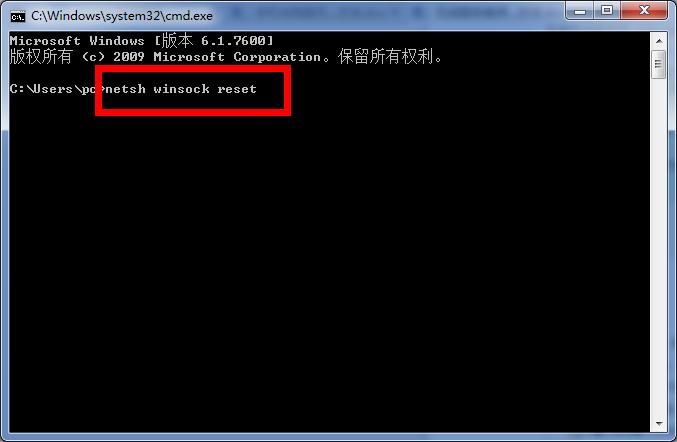 3、以管理员身份启动cmd输入netsh winsock reset 回车,然后重启电脑即可。