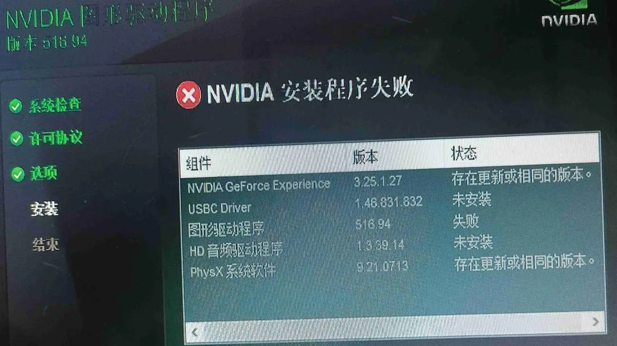 Nvidia显卡安装失败,提示存在更新或相同版本的驱动程序,怎么办