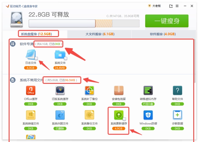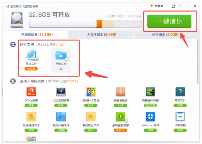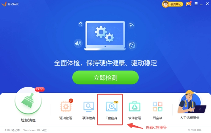 怎样才能快速、高效、安全地完成“C盘清理”,可以尝试驱动精灵的“C盘瘦身”功能,具体操作如下: