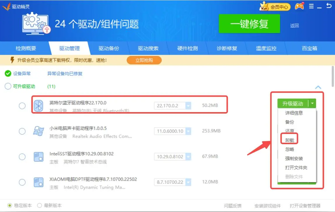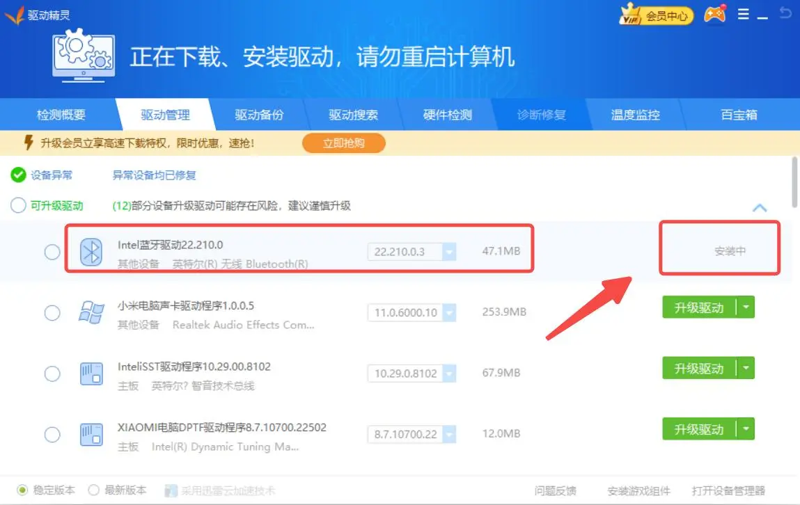 驱动精灵怎样快速安装电脑蓝牙驱动程序