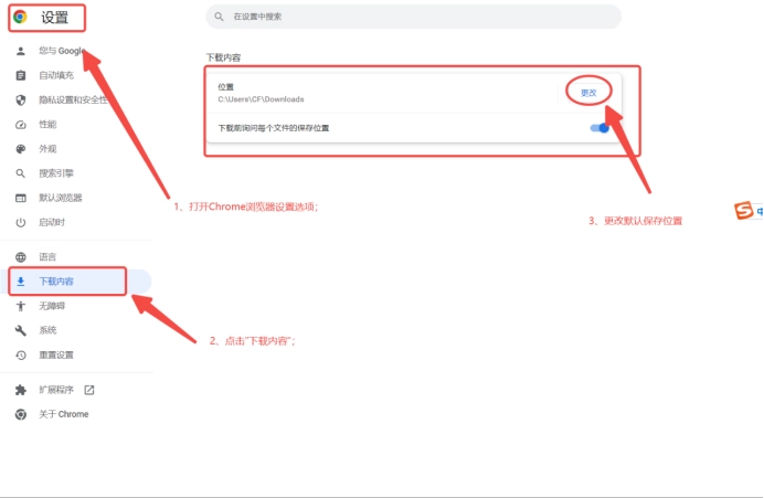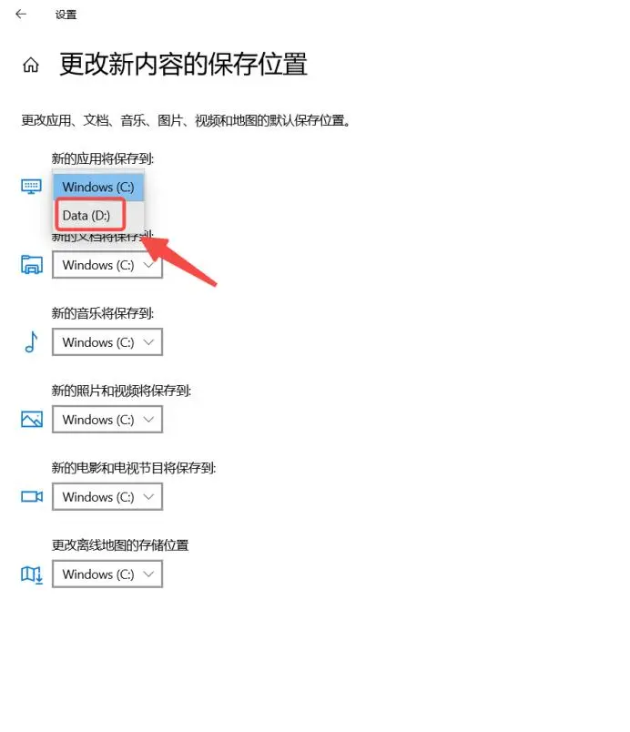 (3)将默认保存位置,由C盘更改为其他磁盘;