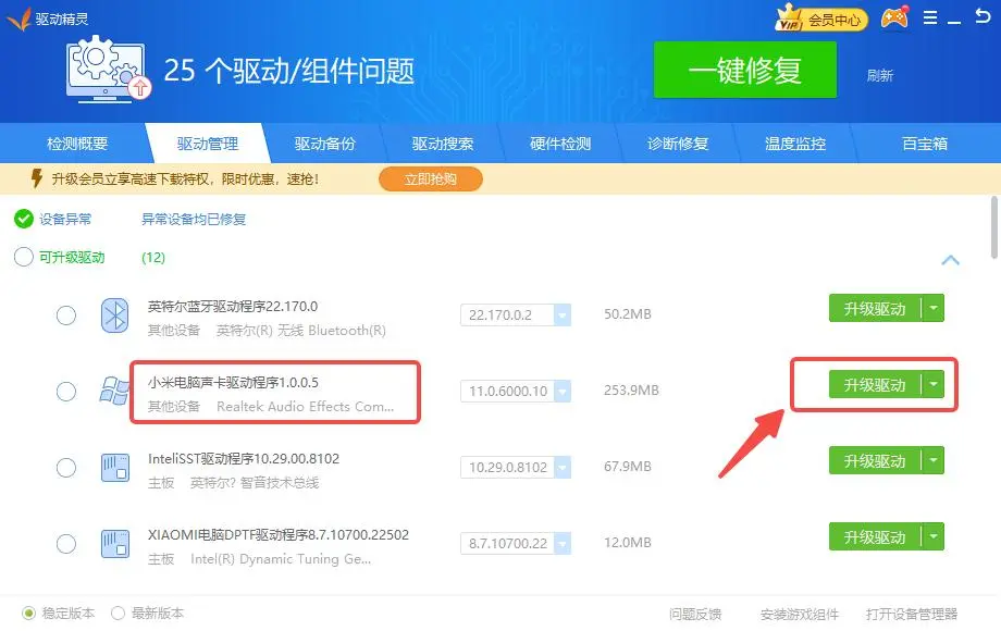 也可以安装驱动精灵来更新、重装或安装声卡驱动,具体操作步骤如下: