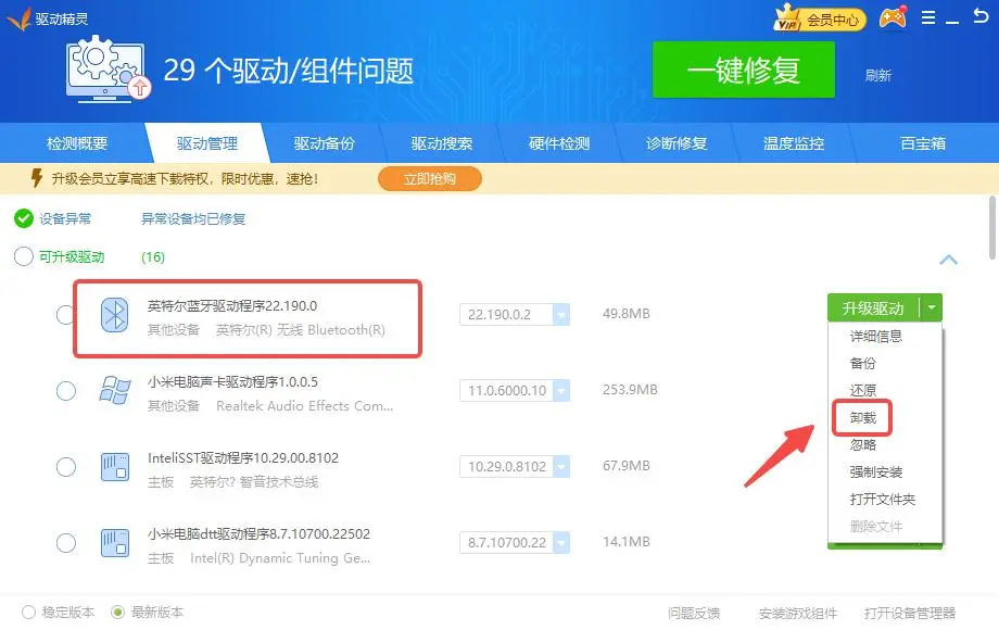 使用驱动精灵安装蓝牙驱动的步骤如下: