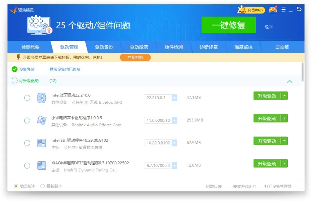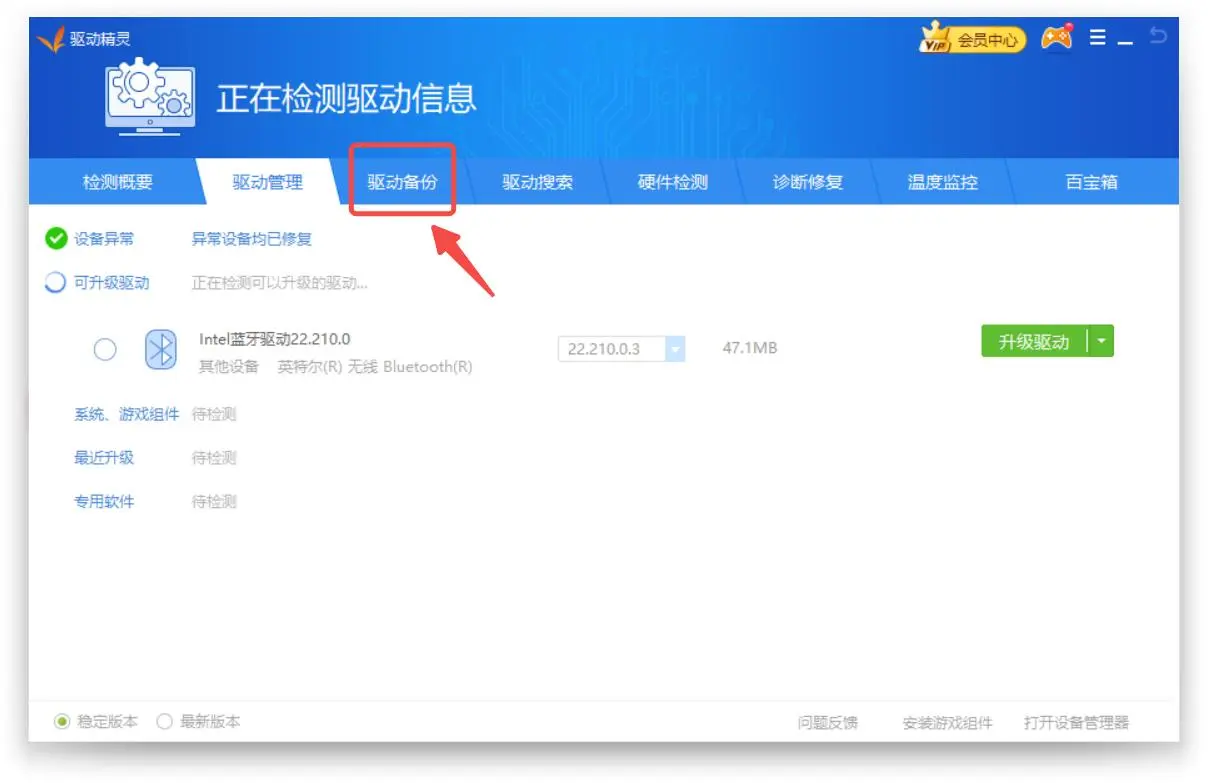 从官网下载比较麻烦,还有更省心的方式,就是用驱动管理软件,如驱动精灵进行安装,具体操作如下: