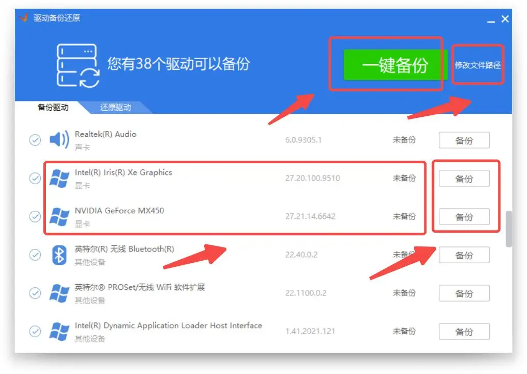 4、在体验新版显卡驱动之前,建议先将旧版驱动备份,点击“驱动备份”功能;