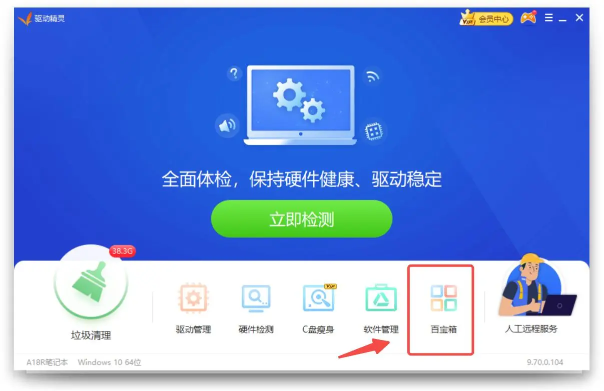 1、启动驱动精灵,点击“百宝箱”功能;