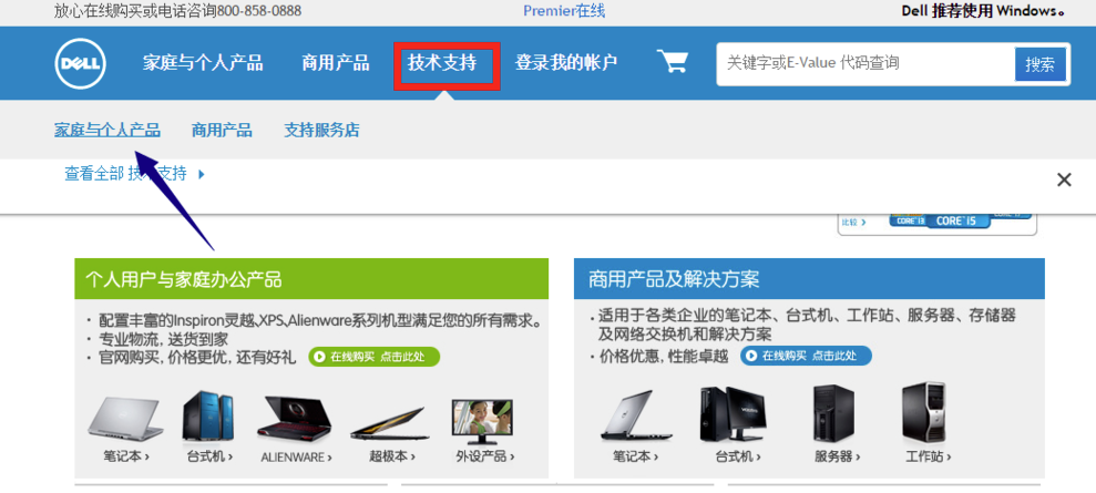 1、进入设备官网选择技术支持--个人产品,如下图所示