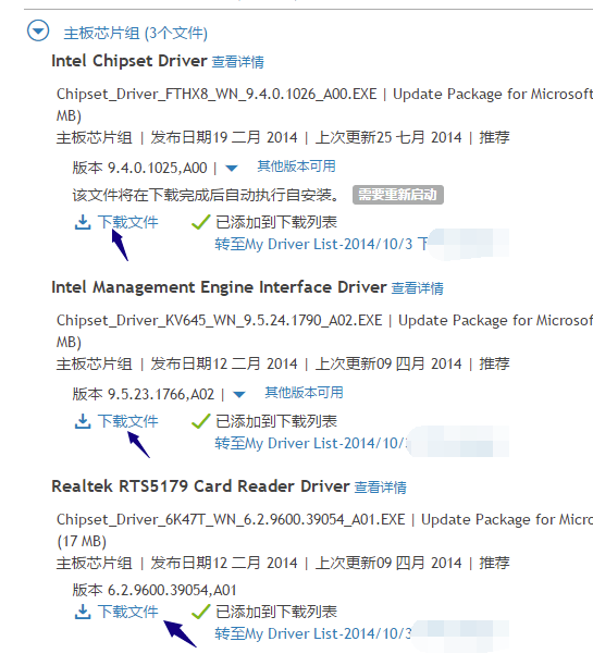 5、依次下载驱动文件,然后逐个安装后重启即可!如下图所示