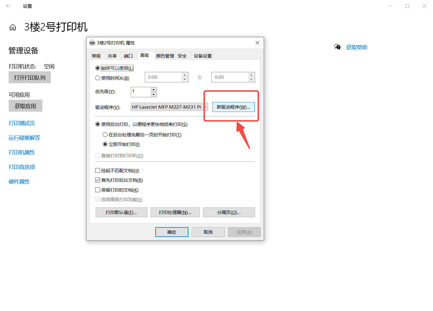 8、安装新的驱动程序后,系统识别了线下打印机,可以正常打印。