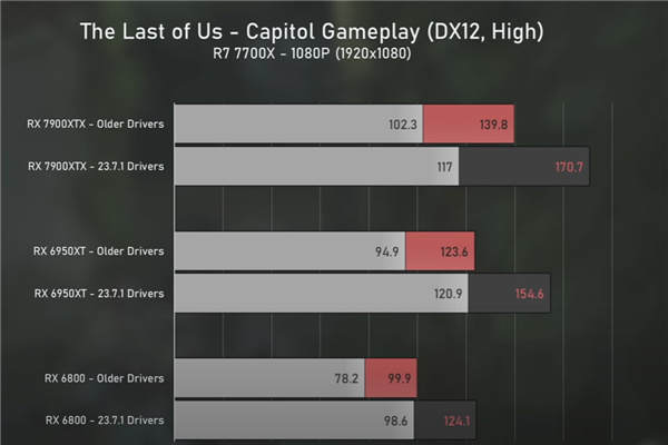 总的来看,这个测试主要是对比了《地平线5》及《最后生还者》两款游戏,代表性或有不足,但是从驱动的表现来看,AMD做好优化之后,RX 7000及RX 6000系列显卡的表现都可圈可点。