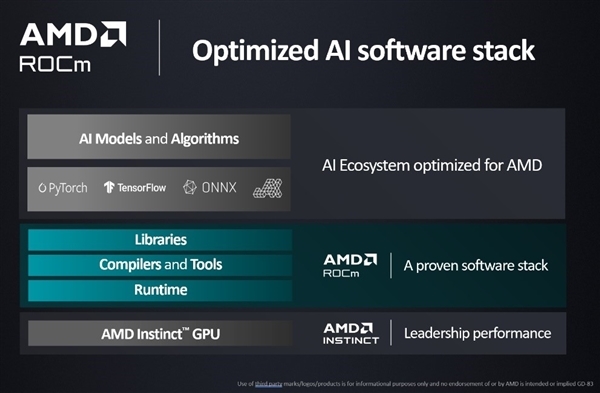 她表示AMD在软件生态上已经有了很大的进展,他们支持开放性的生态标准,去年底发布的新软件(应该是指ROCm)及Meta开源的AI框架PyTorch都可以让AMD的芯片效能大幅提升,目前有很多开发者在用。