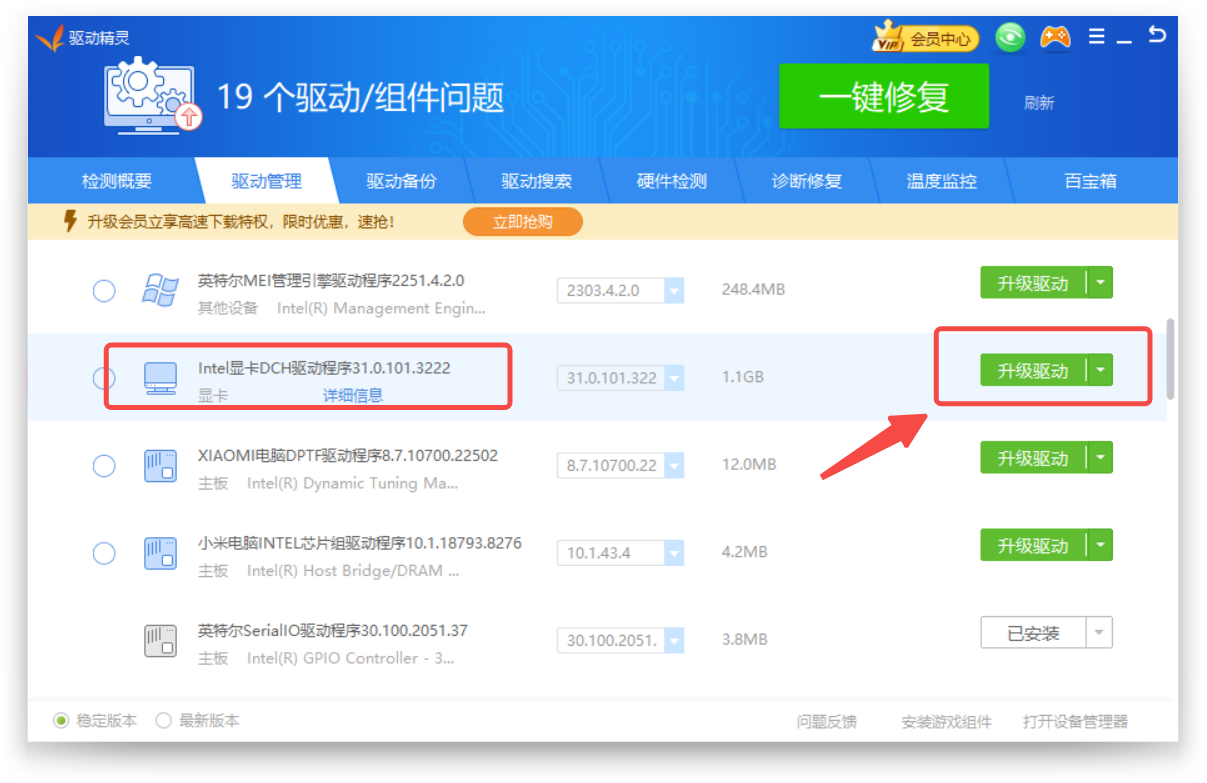 显卡驱动程序是控制显示器分辨率的关键。使用驱动精灵快速更新显卡驱动程序;