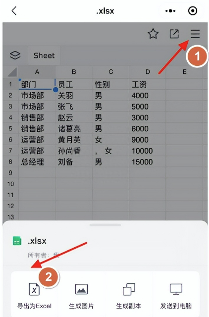 我们在手机小程序中,打开这个表格,然后点击右上角的菜单选项,我们导出为excel文件
