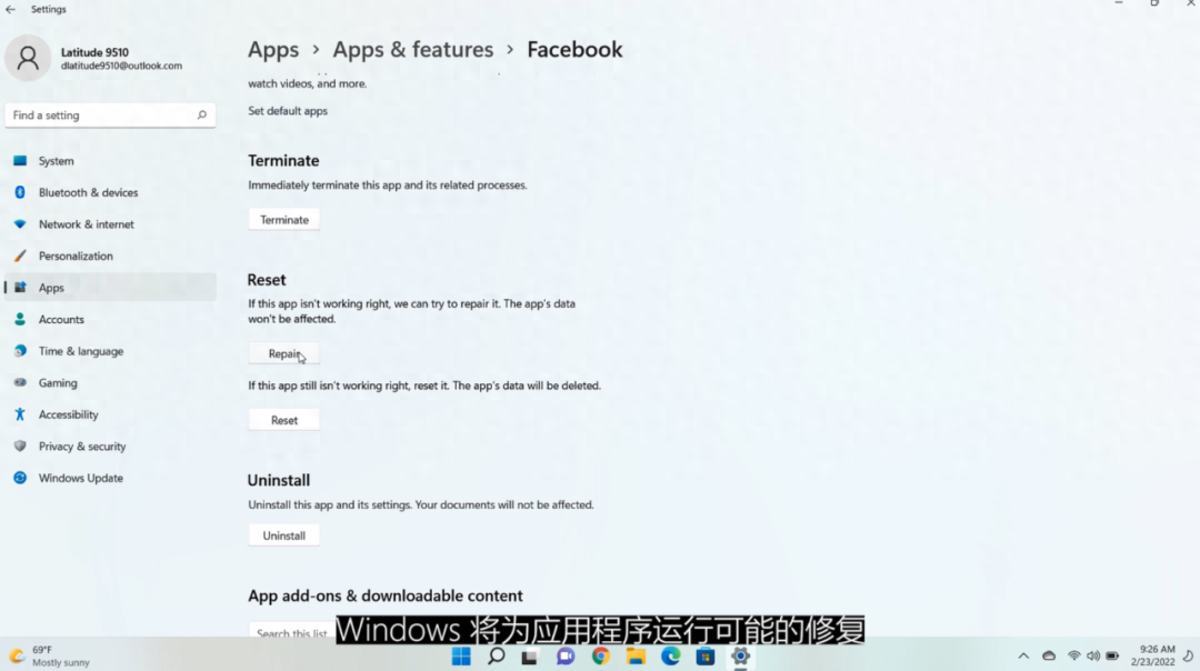 修复或重置应用程序。此操作或许能解决与损坏或配置错误的设置相关的问题。