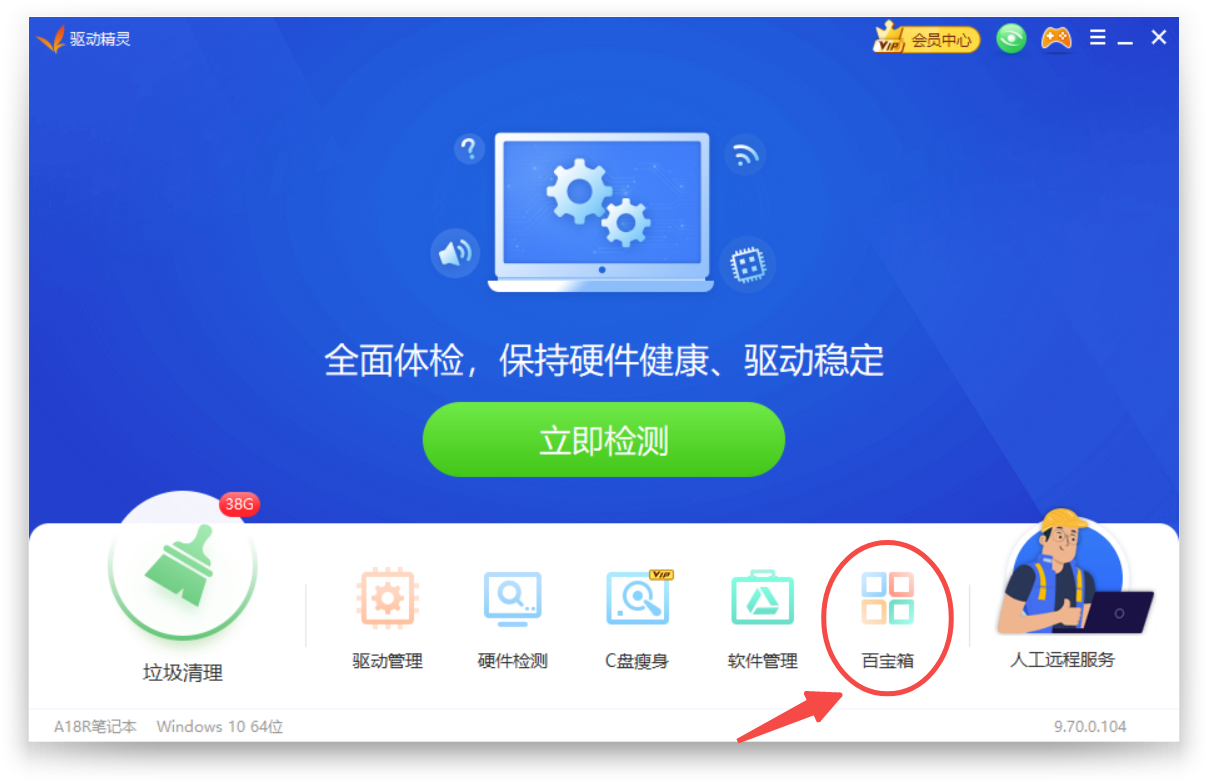 (1)启动驱动精灵,点击“百宝箱”功能;