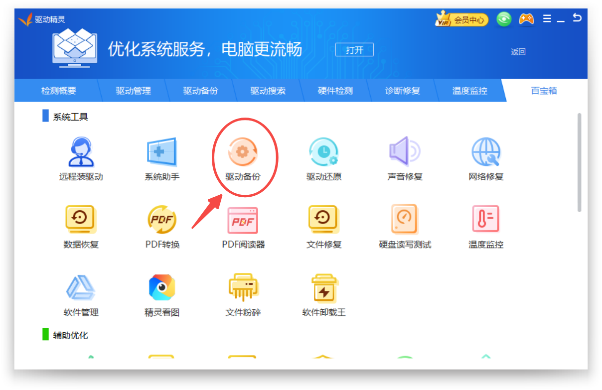使用驱动精灵,可以快速方便对电脑硬件驱动进行备份,具体操作如下: