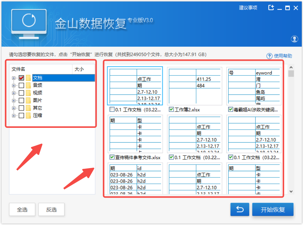 8、选中需要恢复的数据,根据数据类型,可以快速查询对应数据;