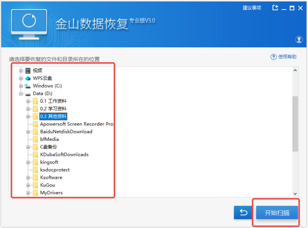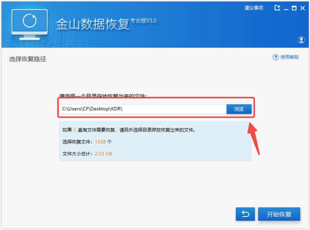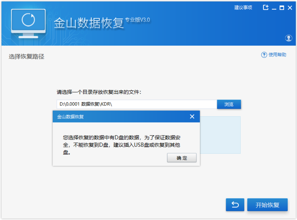 10、恢复数据最好在一个空白盘符或U盘;