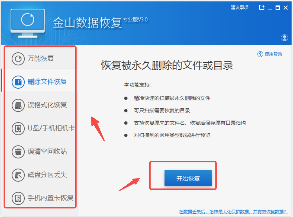 除了上述的方法,其实比较简单的恢复方法就是通过专门的软件来恢复,如驱动精灵的数据恢复功能,可以恢复多种格式的文件,操作也十分简单,非常适合学生党和上班族。那已经删除的文件怎么恢复?
