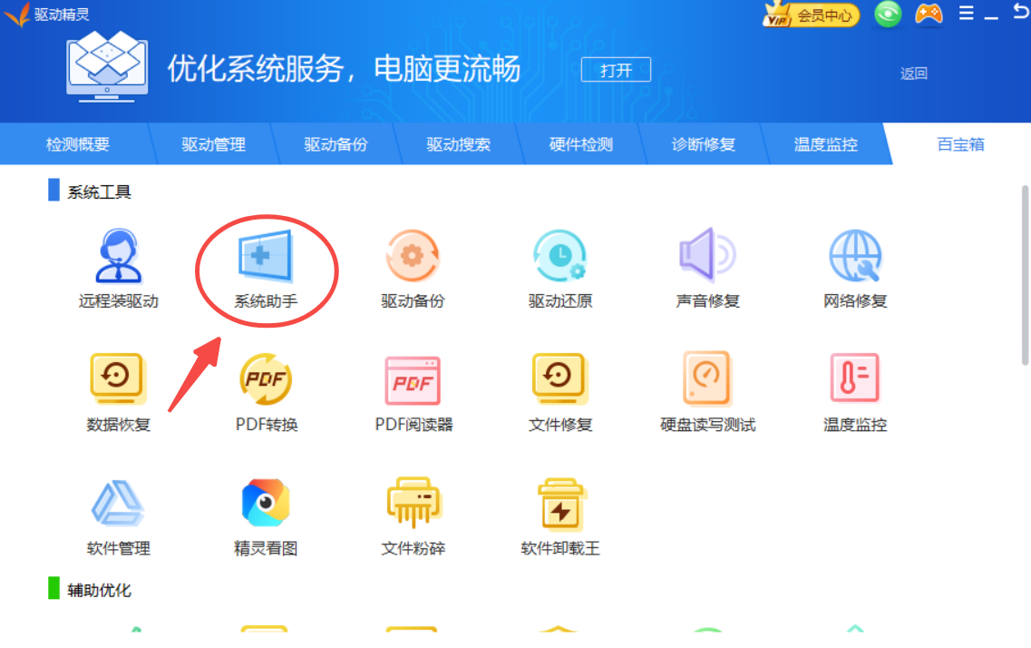 驱动精灵系统助手快速修复安装,具体操作如下: