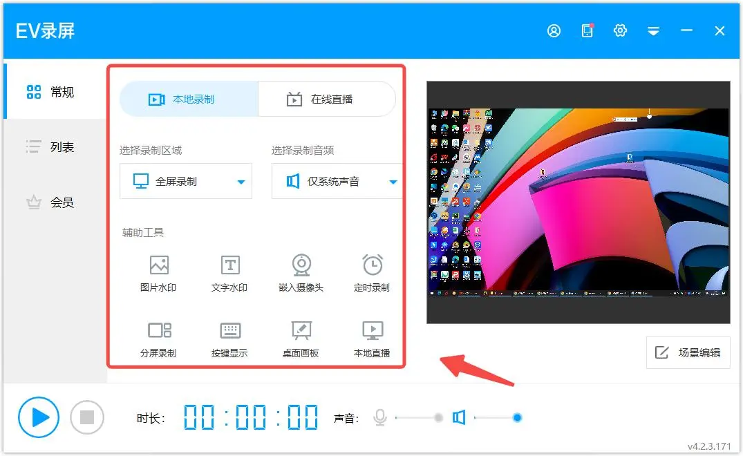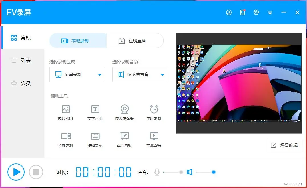 EV 录屏软件是一款免费无水印,集视频录制与直播功能于一身的桌面录屏软件,可实现分屏录制、实时按键显示、录屏涂鸦等功能。