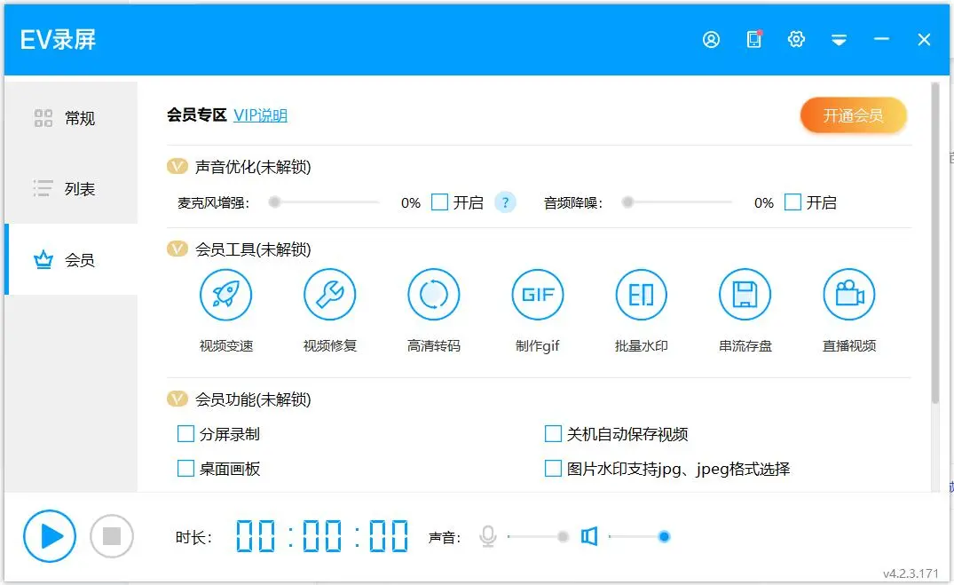 EV 录屏软件操作简单,轻松易上手;内存占用率低,CPU 消耗小;不限时间、不限大小,想录多久就录多久;轻松添加水印,给视频贴上专属标签;录制高清的教学视频,支持多级别音频采集;录制电影的原声,直接从声卡中取出高清音频数据;支持各大主流游戏,可同时采集麦克风音频和声卡;原声,音频高保真!