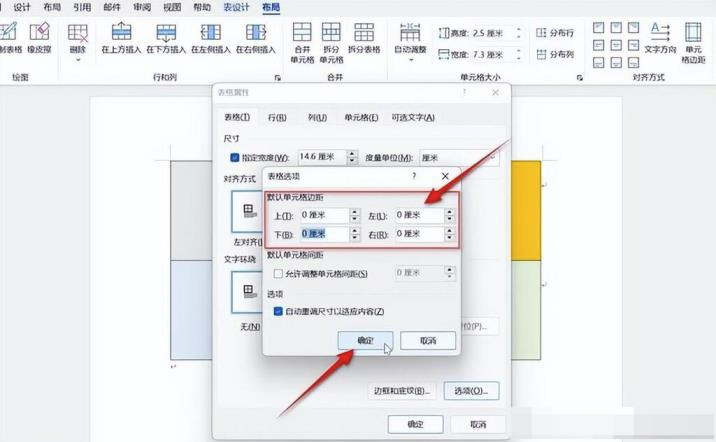 我们只需要将表格默认单元格边距重新都设置为0厘米即可解决,具体步骤为:选中word表格,单击“布局”-“属性”-“表格”-“选项”,将默认单元格上下左右边距都设为0厘米,单击“确定”即可。