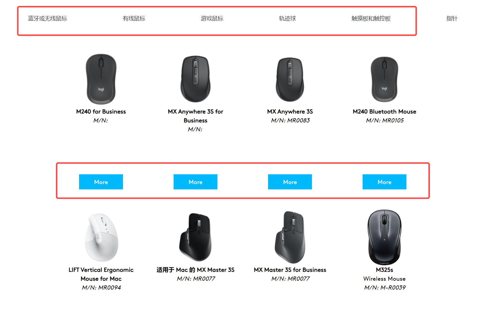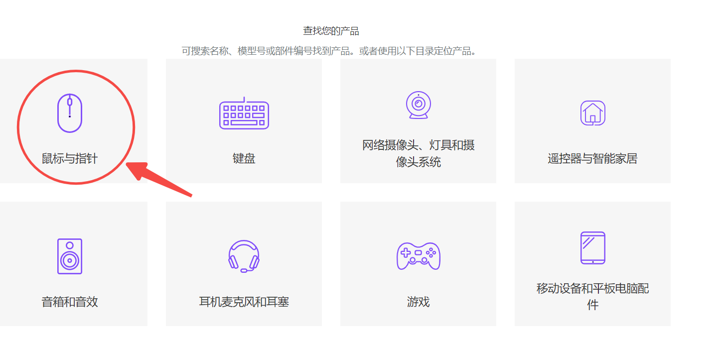 2、点击“查找您的产品”中的“鼠标与指针”;