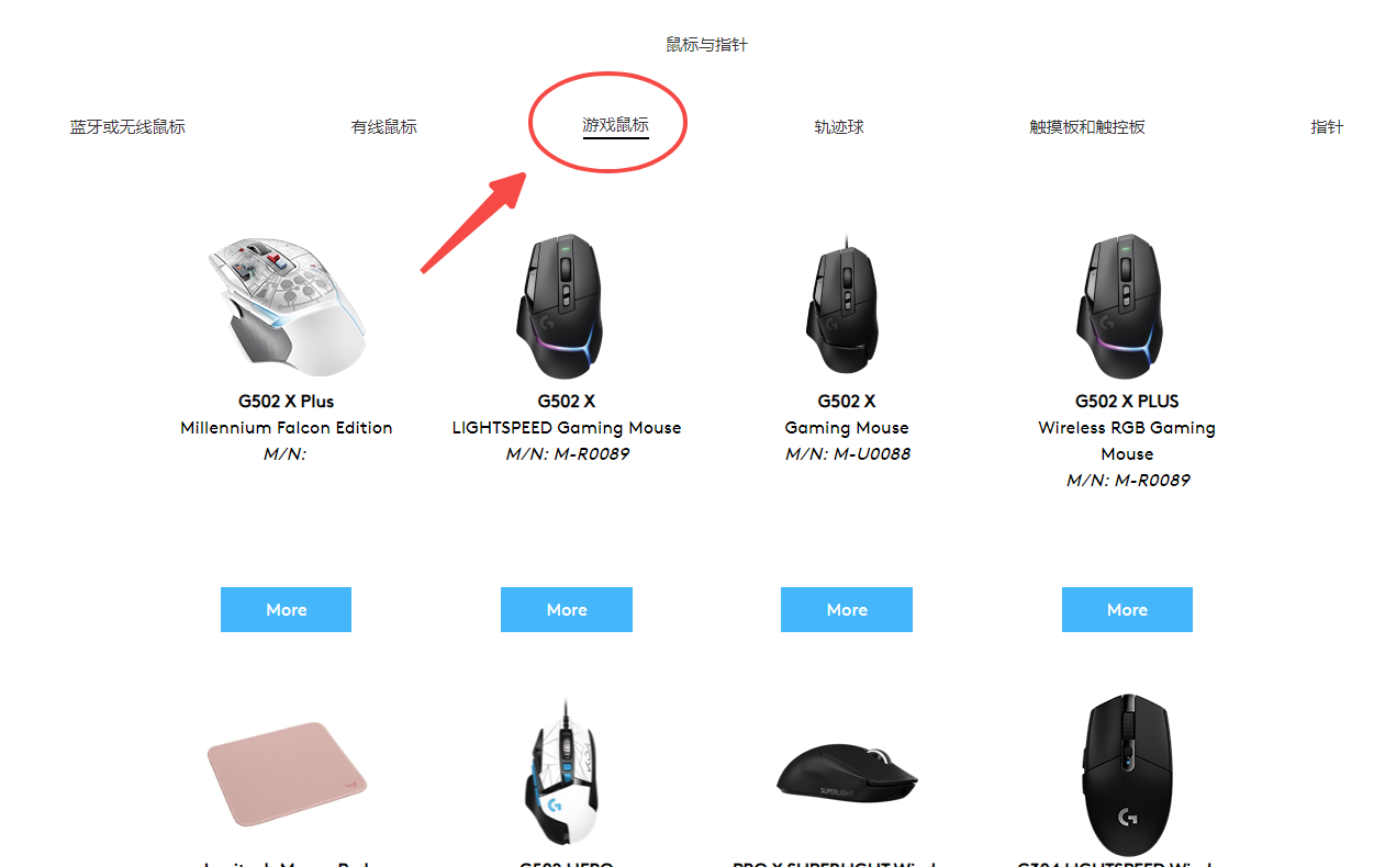 3、点击“游戏鼠标”,查找对应的“G102”型号;