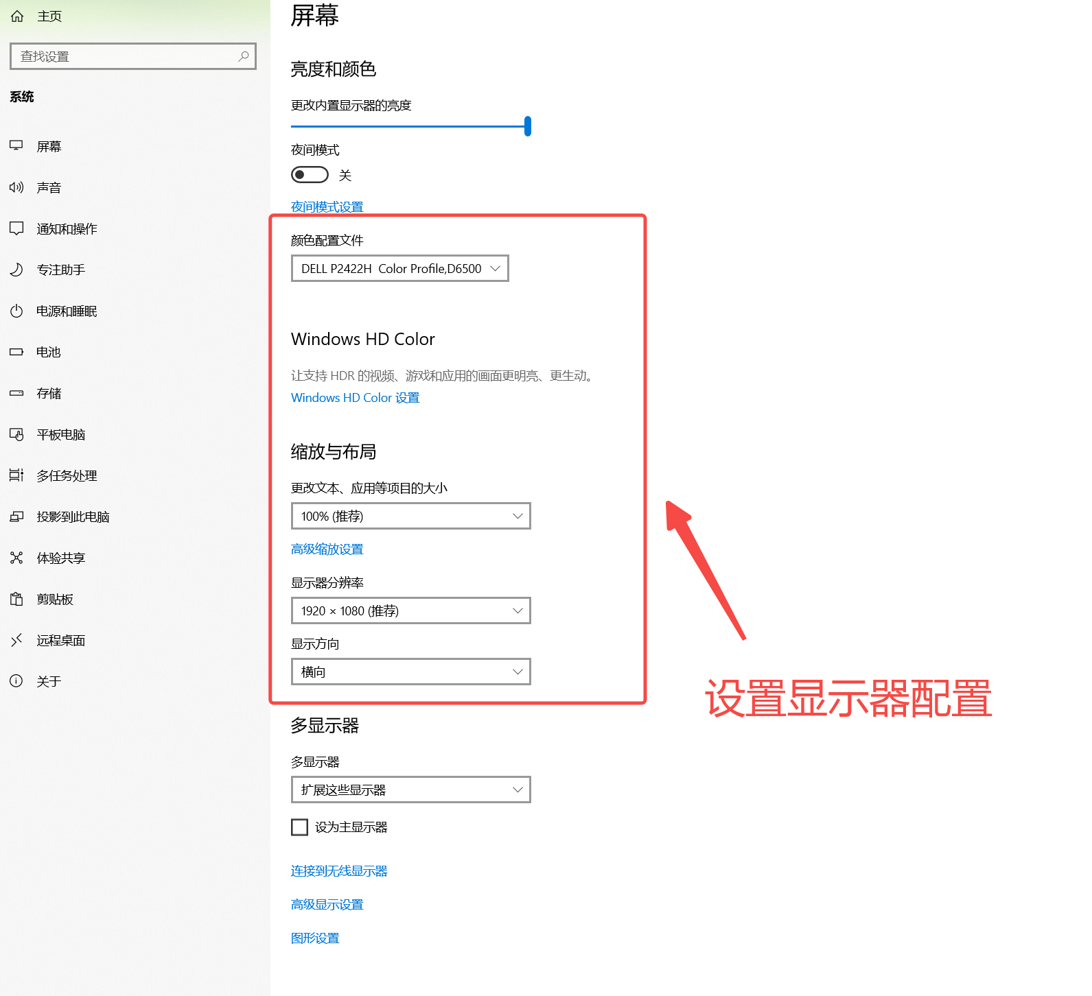 6、需要设置哪个显示器,就选中谁,在下方设置。