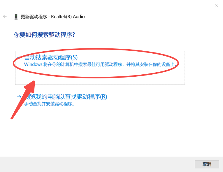 5、在弹出框中点击“自动搜索驱动程序”;