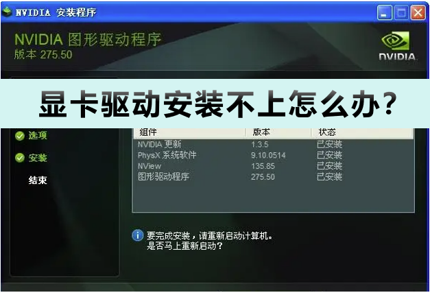 安装显卡驱动时显示图形驱动程序失败,怎么办?
