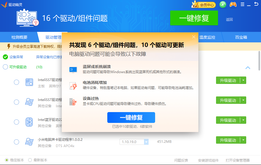 驱动精灵安全、高效、专业解决各种电脑驱动问题