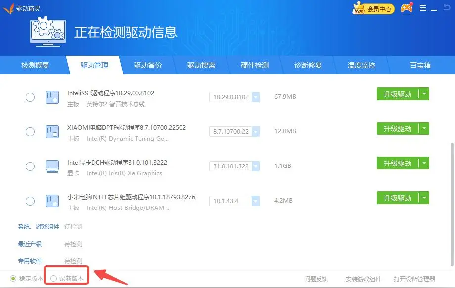 驱动精灵会自动识别打印机的品牌、型号,当前最合适的驱动程序,如果向体验最新的驱动程序,可以在界面下方选择“最新版”驱动程序即可。