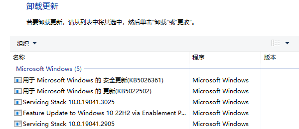 1、卸载更新补丁