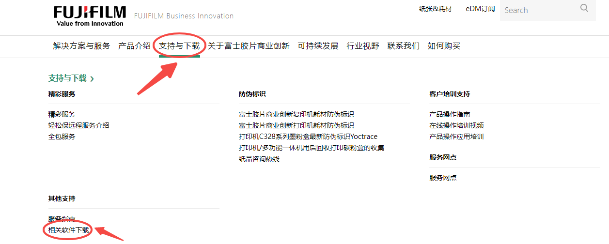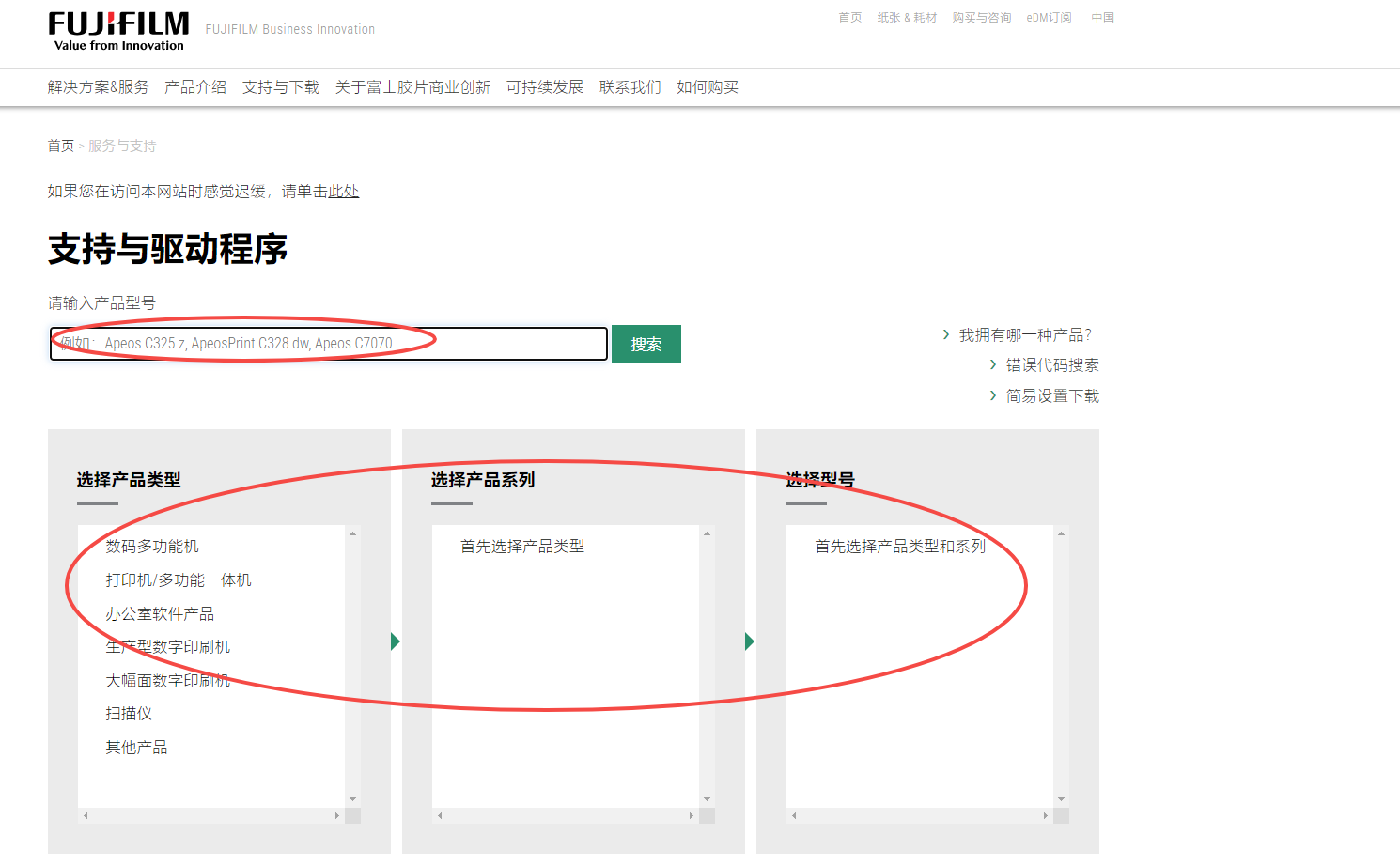 1、通过百度、bing等搜索引擎,进入富士施乐打印机官网;