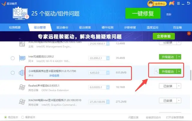 华为MateBook X Pro是华为高端笔记本电脑,可以使用驱动精灵快速更新显卡驱动程序,具体操作如下:
