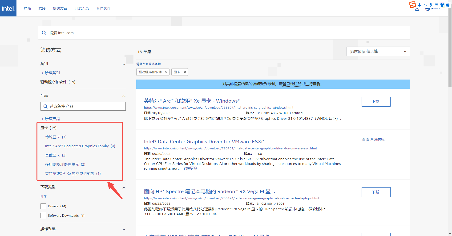 1、先在Intel官网下载显卡驱动安装包;