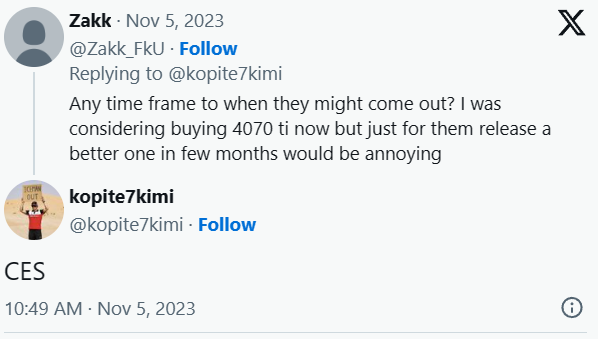 从目前来看,RTX 40 SUPER系列将在CES 2024上正式发布。