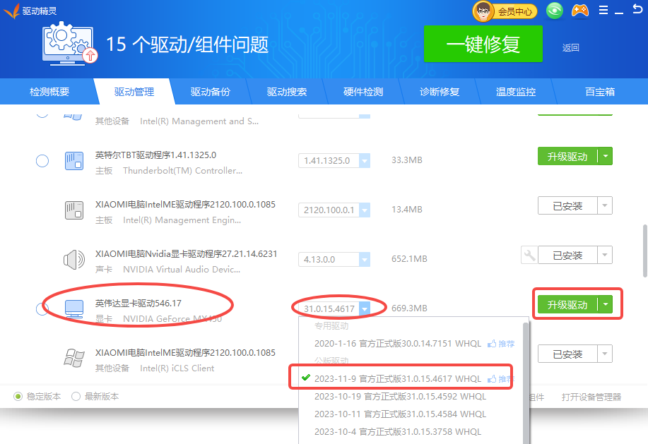 4、点击“nvidia显卡”-选着“驱动版本”安装;