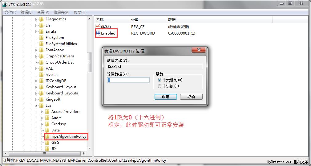 把Enable的值由1改为0,驱动即可正常安装(为避免出现未知问题,安装驱动成功后,建议将此值改回1)