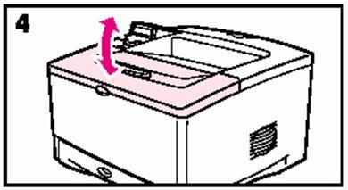 4、合上后挡门。(合上后挡门后,手柄会自动返回原位)打开顶盖,然后将其关闭以清除卡纸信息。如果卡纸信息仍然显示,则说明打印机内还有卡纸。请在别外一个位置查找卡纸