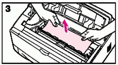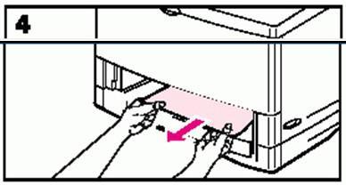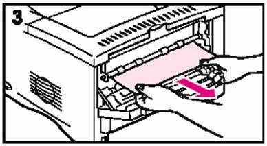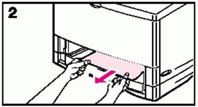 3、抓住纸张两侧,然后慢慢地将纸张拉出打印机。如果很难取出纸张,则尝试打开顶盖并卸下打印碳粉盒,以减轻对纸张的压力