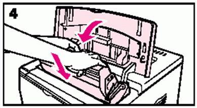 3、将纸张慢慢地拉出打印机。请勿撕裂纸张。避免松散的碳粉举出。使用无绒干布清除可能落入打印机的松散碳粉。如果松散的碳粉落入打印机,则可能会导致暂时性打印质量问题。打印几页后,松散的碳粉应会从送纸道清除。如果碳粉沾在衣服上,请用干布将它抹去,然后用冷水洗涤衣服。因为热水会使碳粉渗入纤维。