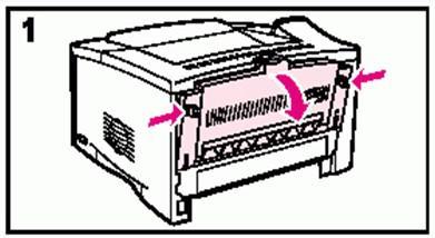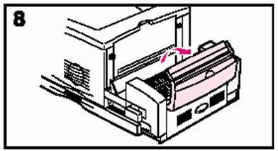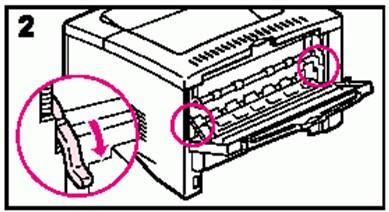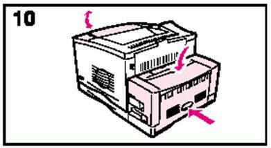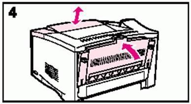 10、合上双面打印器的后挡门,然后将双面打印器的后面部分推回打印机。打开顶盖,然后将其关闭以清除卡纸信息。