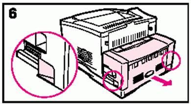 6、从打印机后部,使用双面打印器两侧的手柄将后面部分滑出,直至其停住。